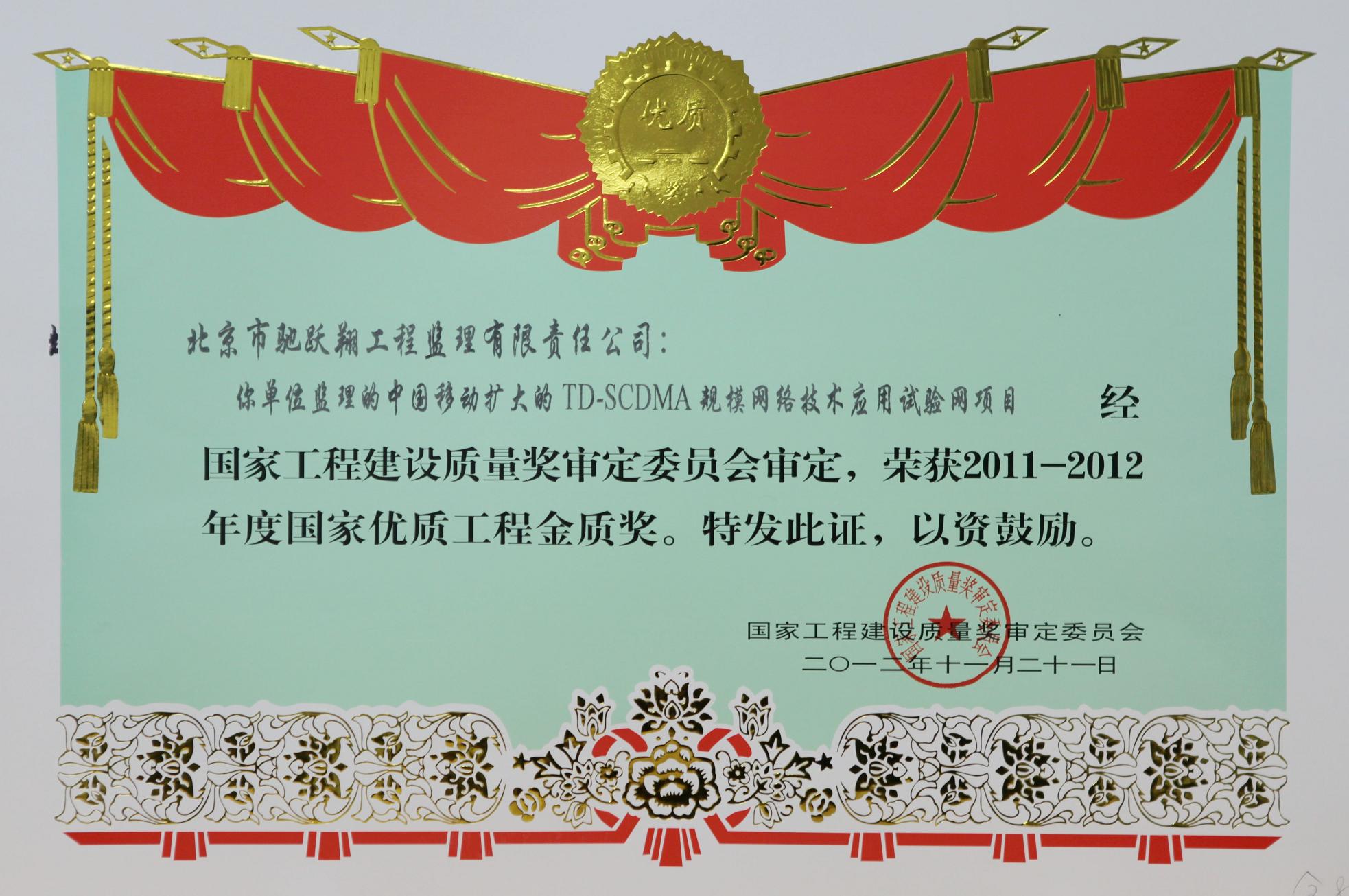 國(guó)家優(yōu)質(zhì)工程金質(zhì)獎(jiǎng)